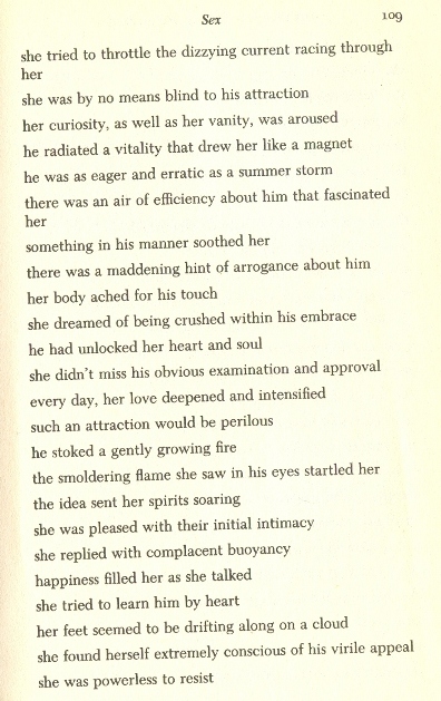 What a hoot! What do you do when you’ve used the word “manhood” too many times in your romance writing? You turn to the Romance Writers’ Phrase Book, of course! Pour yourself a cocktail and read this book for the fun of it, whether you write romances or not. Check out these excerpts from the “sex” section. (Don’t give me that look. Of course I’m giving a sample from the sex section!)