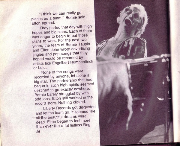Our story begins as poor Reggie Dwight struggles against the expectations of his military father. Suddenly, he meet Bernie Taupin and the magic starts to happen. For 2011, I am wondering how many kids will “get” what Elton John was in the mid 1970’s. I am also concerned that the particular library copy I had access to had some nice looking mold in the bindings and was held together with sticky tape. (It wasn’t even good book tape) As a highly sophisticated teen in 1976, I know I would have ignored this book simply because it looked like a “kids” book. My boy Reggie deserves a much better book and something a bit more current and pictures in color, please!
