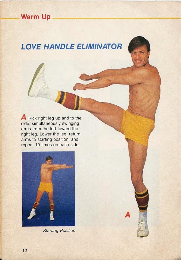 Submitter: I ran across Flatten Your Stomach: For Men Only when I was sweeping the shelves for books that patrons had been browsing and put back in weird places. The fact that I found it out and about argues that someone was looking at it recently, even though it’s only been checked out once since 1999. Flatten Your Stomach: For Men Only was produced by Consumer Guide magazine in 1987, and paging through I couldn’t find anything that indicated why it was for men only, except that most of the routines seem to be named after plays from miscellaneous sports (e.g., “Power Play,” “Two-Point Shot,” and my personal favorite, “Punt”). I think we all know that no woman would be able to follow such a high-concept premise. The most disturbing part (other than the short-shorts) is probably his continuously perky expression. The other disturbing thing is the fact that another library in our consortium has a copy from 1984 still in circulation.