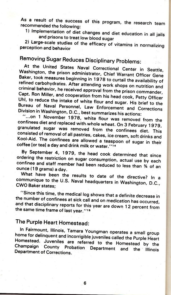 From the back of the book: “…demonstrates how ‘junk’ food diets, sugar starvation, vitamin deficiencies, lead pollution and food allergies can convert a normal brain into a criminal mind.”
