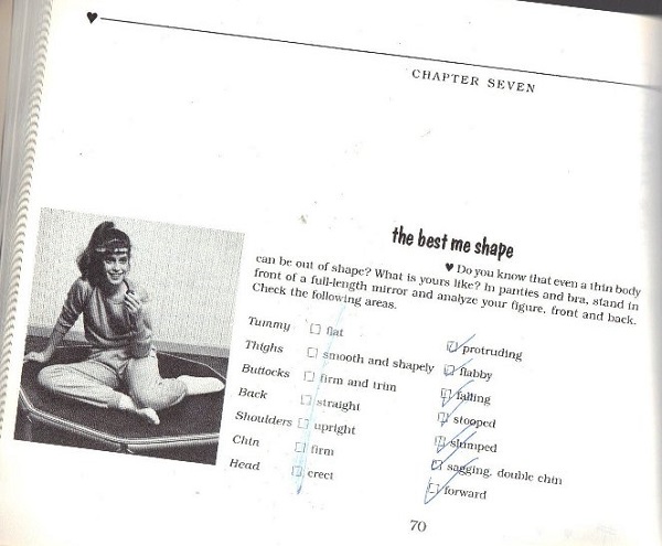Submitter: The real title of this should probably be “The Teen My Mother Wants Me To Be.” She’s trying to claim this was a school project but judging from the writing inside I was in 6th grade when I got this. (Yes, I couldn’t spell “pretty” correctly in 6th grade, apparently. Nor “blonde.” To be fair I was going through some things and just Did Not Care at that point.) And since my 6th grade teacher believed that people should take a bath once every 3 days and never use antiperspirant or mouthwash – according to her Listerine was poisoning our water table – I sincerely doubt she gave this to any of us girls as a school project. (She also used to say that robots were going to take over all our jobs and it was all Reagan’s fault and that we’d all die in the coming ice age due to global cooling.)