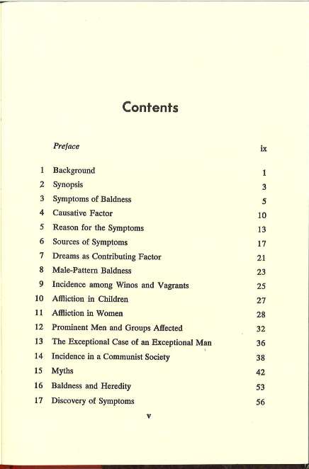 Holly: Chapter 7: “Dreams as Contributing Factor” and Chapter 9: “Incidents among Winos and Vagrants” are intriguing. Oh! And Chapter 14: “Incidence in a Communist Society” too. Apparently communism causes baldness?? The appendices on nearsightedness and knock-knee are just bonuses, I guess. This is bizarre. And old.
