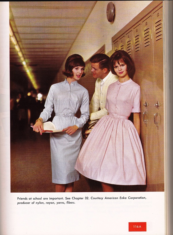This book showed up in a book donation and I had a blast flipping through the pages. From what I could tell, it is a refugee from a high school and it is practically showroom new! WorldCat shows holdings in mostly university libraries which is where this gem needs to reside. In the meantime, you can enjoy this flashback to the early 1960s. Every picture seemed to be reminiscent of a Doris Day movie. My personal favorite picture is the “pajama party”.