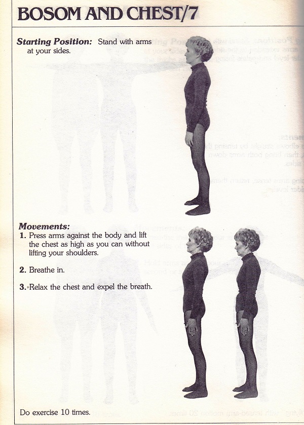 Gotta love these exercise books! Miss Craig’s exercises don’t look too bad. A good chunk of these I have done in a yoga class or two. However, I am pretty sure that “spot-reducing” is a myth. My favorite part is that Miss Craig models these exercises in fishnet stockings–complete with a seam up the back! Va va voom!