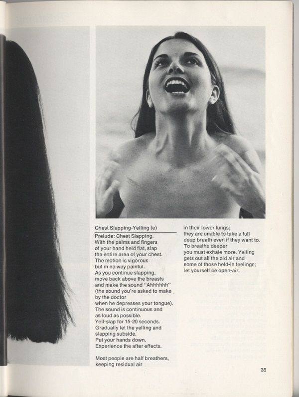Submitter: I work in a small academic library, and I weeded [this] on my first pass through our medical collection. Self-described as “a book of experiments in being alive,” the book invites readers to get in touch with their senses by tapping, and then slapping their bodies all over… and that’s just for starters. I know the 60’s happened, but still, this is one of the most bizarre library books I’ve ever encountered. I didn’t include any scans of the many photos of topless women or naked couples performing these sense experiments… maybe that’s how this book stayed in the collection until the 2010s?
