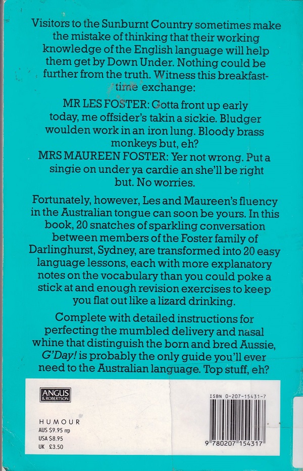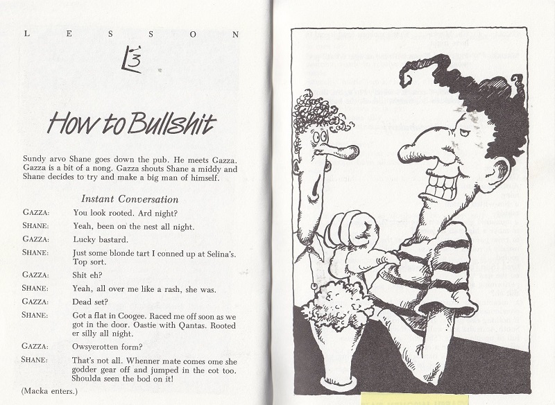 Those of you planning a trip to the wonderful country of Australia might be wise to bring this handy guide to Australian. I invite the Aussies to please comment on the veracity of such a book.