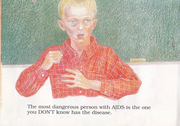 Yes, our friend Doris is back for another instructive lesson on the realities of life. In today’s story, a boy named David has AIDS (not HIV) and is dying. Long time readers will recognize the art and ridiculous non-story. Be sure and click on her previous titles so you can get the full creepy experience.
