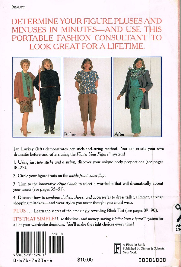 The woman on the cover does look nicer in the blue and green outfit than the red, so the advice in the book seems reasonable based on the cover. Too bad she’s dressed like a Golden Girl.