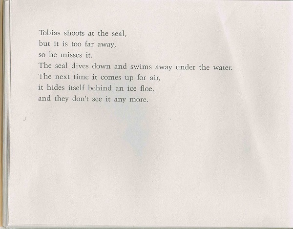 Others will recognize this as a cultural study of how things are done in the books’ setting of Greenland (and it does seem fairly accurate). They may even be glad to see a children’s book that illustrates responsible hunting. It’s not a sport in the book; it is a food source for Tobias’ family and the author doesn’t romanticize either the cute seal or the victory of the hunt. My thought is that this is meant for older children and it would be better cataloged as non-fiction than as a picture book, even though it is a fictional story.