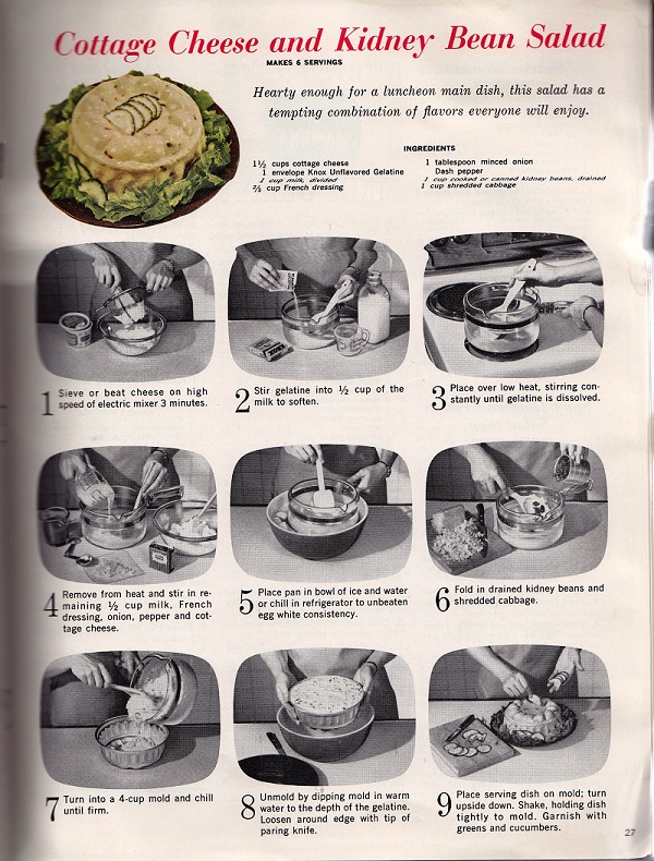 Inside you will find some super appetizing dishes that mold your food into wonderful shapes. Try serving up these molds at your next gathering. My favorite: Cottage Cheese and Kidney Bean Salad. (Yes, you read that right!)