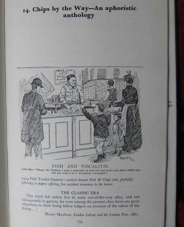 He tells of the launching of Fish & Chips upon the unsuspecting people of the United States. In 1936, after the introduction of ‘English Fish Bars’ in many American cities, The Fish Trades Gazette announced: ‘It’s a wow! You wanna step down to 130 East 45th Street and see a little bit of England in the form of a Fish & Chip shop? It’s a cinch! New Yorkers who have discovered this dandy eat are sure spilling a bibful about it. It’s the works! I was certainly wowed to learn that a Mr Salt opened his first Fish ‘n Chip shop in Sausalito, near San Francisco and served up the ‘finger-food’ in specially printed hygienic replicas of a front page of The Times!