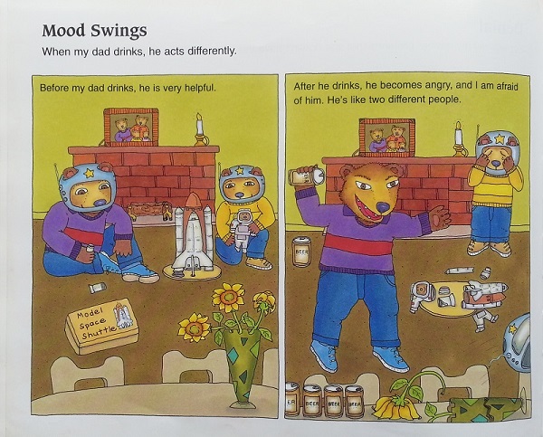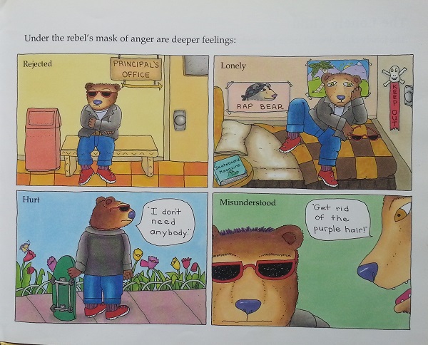 Holly: The poor bears are pretty funny. I’m no child psychologist, but maybe a picture book about a difficult situation helps a child better understand what is happening to him. Maybe using animals makes it all less threatening than depicting humans. The only real problem I have with this book is that the vocabulary seems to be for older children. A child young enough to have a picture book read to him may not understand some of the phrasing used here. Otherwise, it isn’t the worst thing.