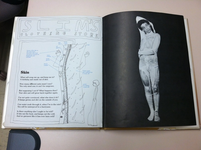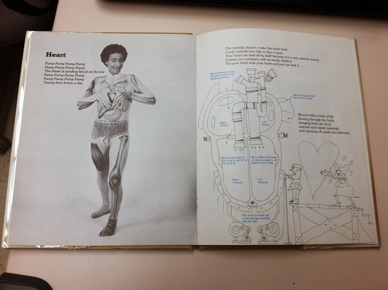 Submitter: I found this as I was weeding the children’s section of our public library. It’s copyright is 1977; it was acquired in 1982; it hasn’t been checked out since 1997. My first thought when I pulled the book off the shelf was, “Is that Bob Saget?” The nicest thing I can say about the pictures is that they are dated. Some are actually slightly disturbing, like the centerfold pose illustrating digestion. Honestly, I was too distracted by the guy wearing the unitard that I couldn’t concentrate on any of the information presented in this book. Some further Internet research revealed some YouTube clips of Slim Goodbody [such as this one]. Slim Goodbody is also still touring the US and giving presentations at elementary schools. I can only hope his books have been updated a little bit. http://www.slimgoodbody.com