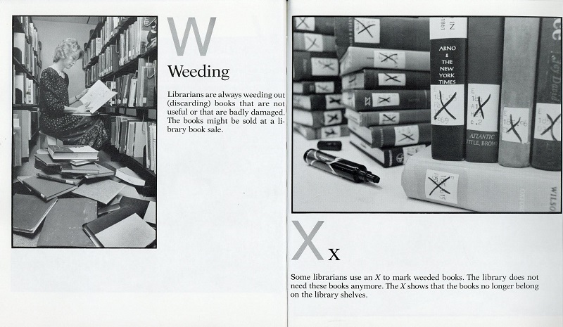Submitter: When I first started at this job back in 2000 , we were still using those flip ledgers that women is using on the back cover. It seemed ancient then. After two weeks, I was done and automated the process. I of course had to include W is for weeding and X is for crossing out. Excellent!