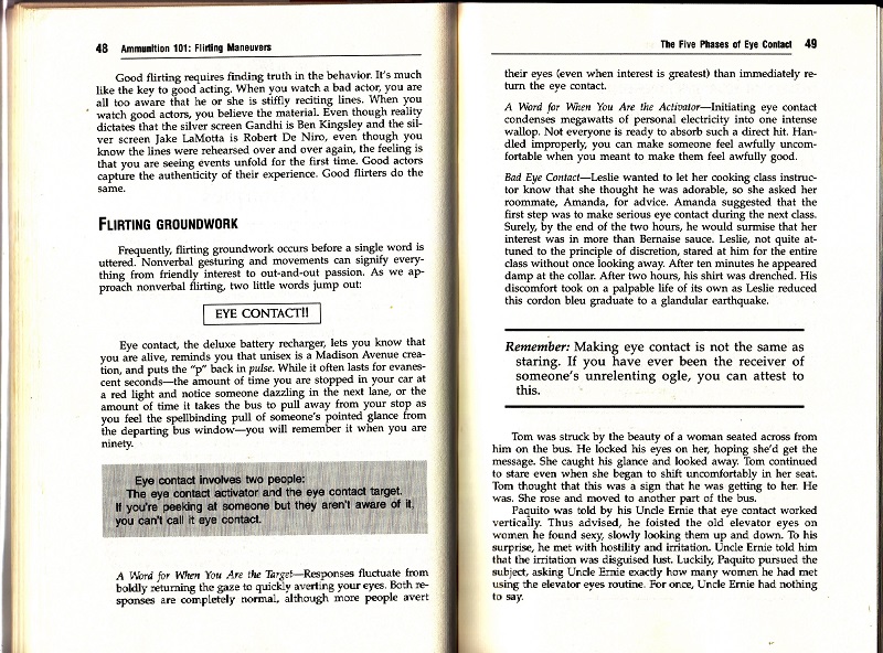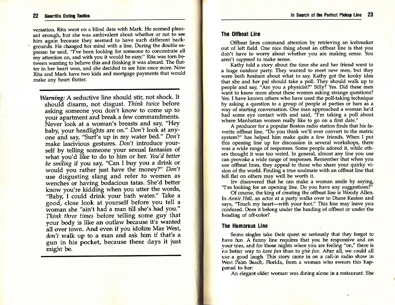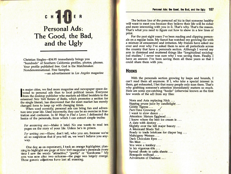 Are you desperate for love? Are you looking in all the wrong places? This is your book! It even has a MONEY BACK GUARANTEE! This book has it all: flirting advice, pick up lines, personal ads, and cutting edge techniques using a fax machine! Sample ice breaker: “Do you think we will ever change to the metric system?” Now I am all hot and bothered thinking about the metric system.
