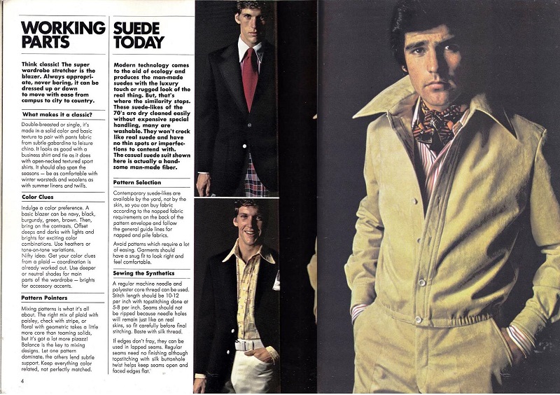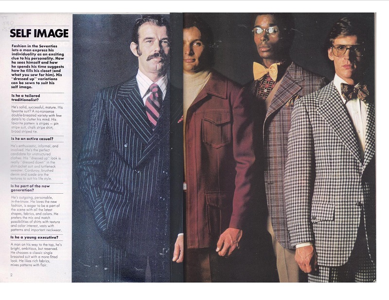 Time to get groovy with your sewing machine! The 1970s come alive for all the men in your life. Casual wear to a snappy suit can be yours with this sewing book. I will just let these pictures speak for themselves.