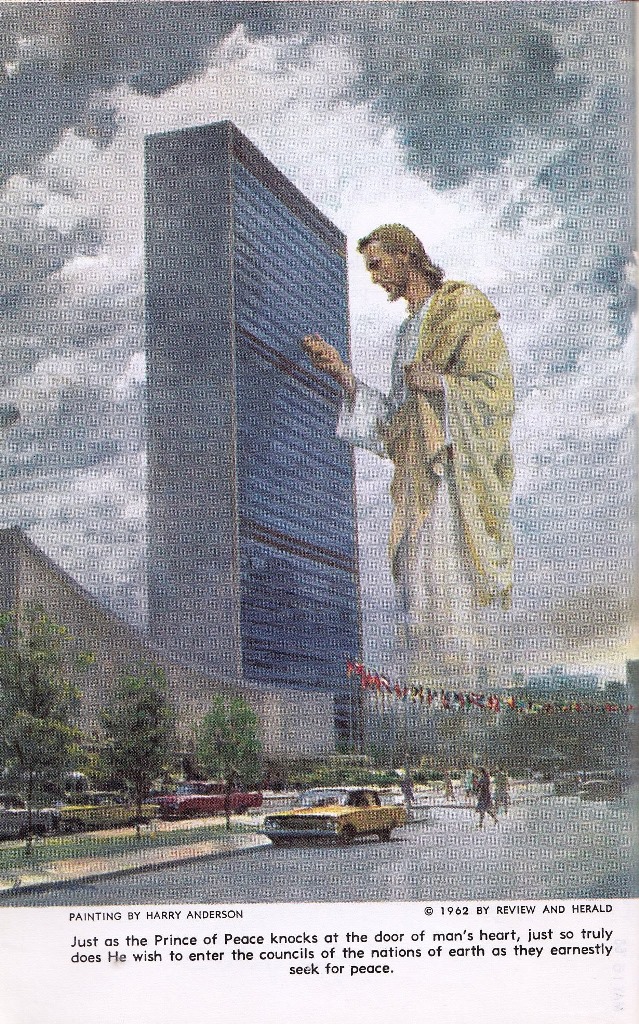 Regardless of how you might feel about religious materials, you just gotta love these illustrations. What’s not to love? Giant Jesus at the UN or perhaps a sad David Schwimmer look alike contemplating good versus evil. (Hint: The devil has a mustache.) In other pictures, he looks like a mean William Powell or Snidley Whiplash.