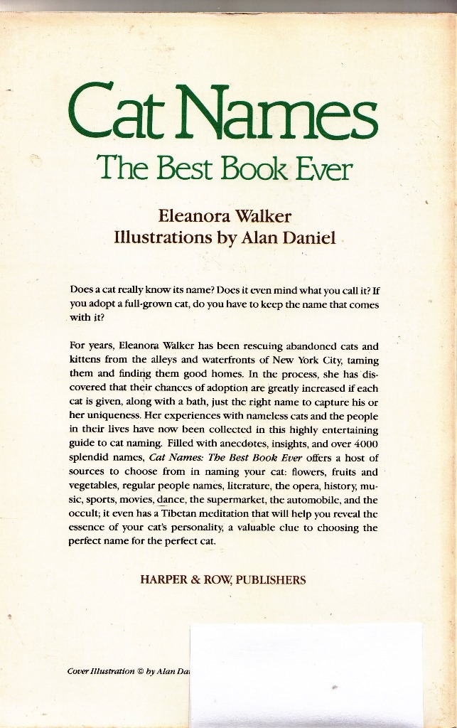 Evidently, the right name for the cat requires research and a book of naming advice. I guess this is a big deal and I am sure that the cat wants to weigh in on this important decision. My feeling is that cats might indeed recognize their own name but that wouldn’t have any impact on the day to day business of napping and food.