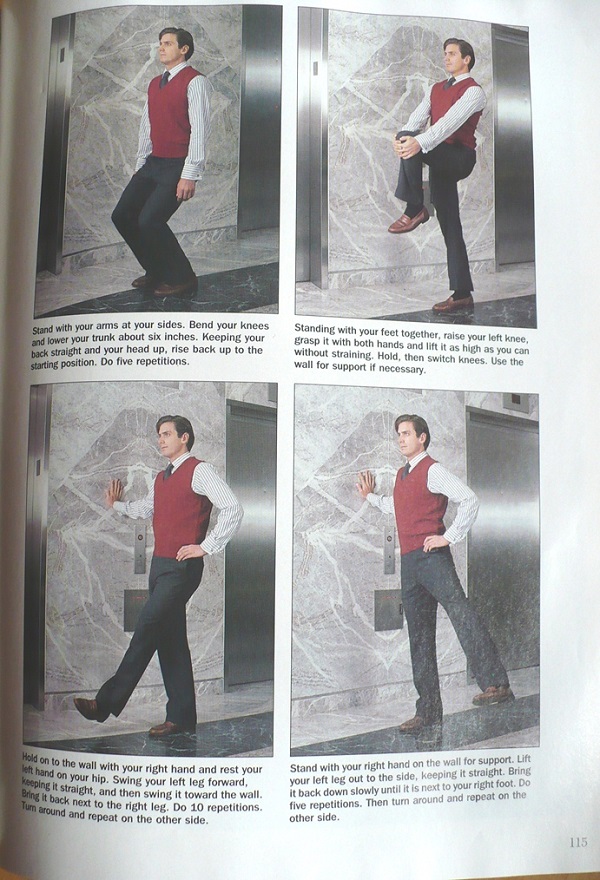 Submitter: This book is currently on the shelves at a local public library. Who knew people in the 1980’s were so busy that they had to fit in exercise while waiting for the commuter train or even an elevator? I guess I just assumed that they stayed fit & trim by lifting over-sized mobile phones. While a book on this topic could be useful to our modern day inactive office workers, it would really need updated pictures… it’s hard to take a good stretching technique seriously when the demonstrator is wearing giant should pads or a sleeveless sweater.