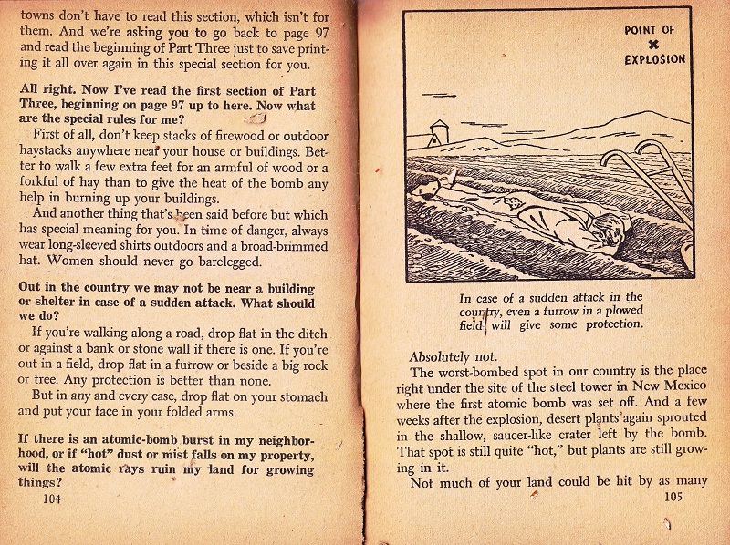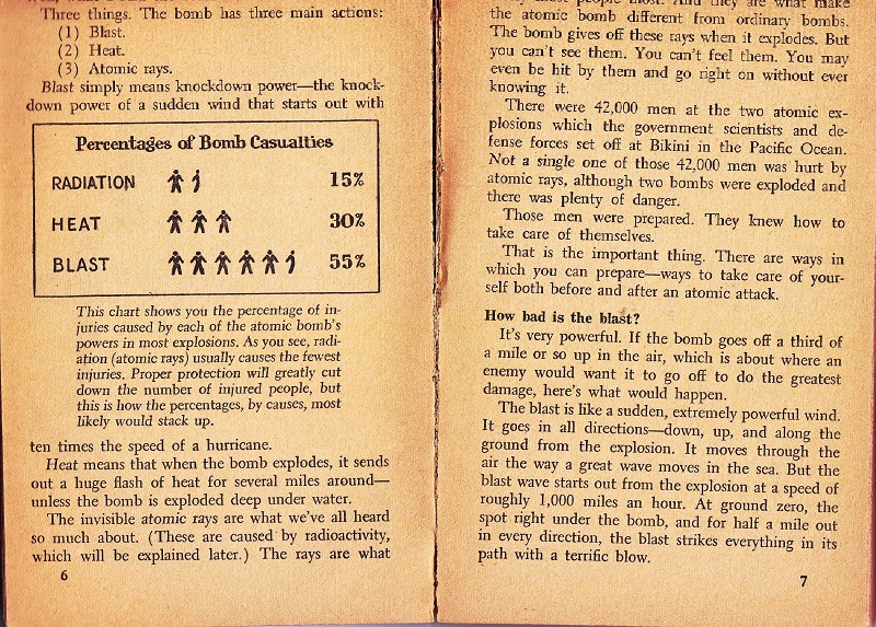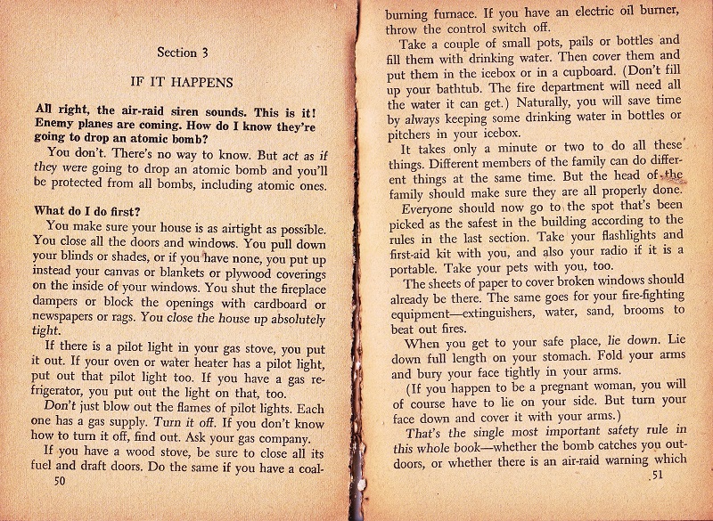 My generation was taught to hide under our school desk in order to dodge “the Bomb”. Every school kid practiced civil defense drills, just like a fire drill. Evidently your average school desk is resistant to atomic rays.