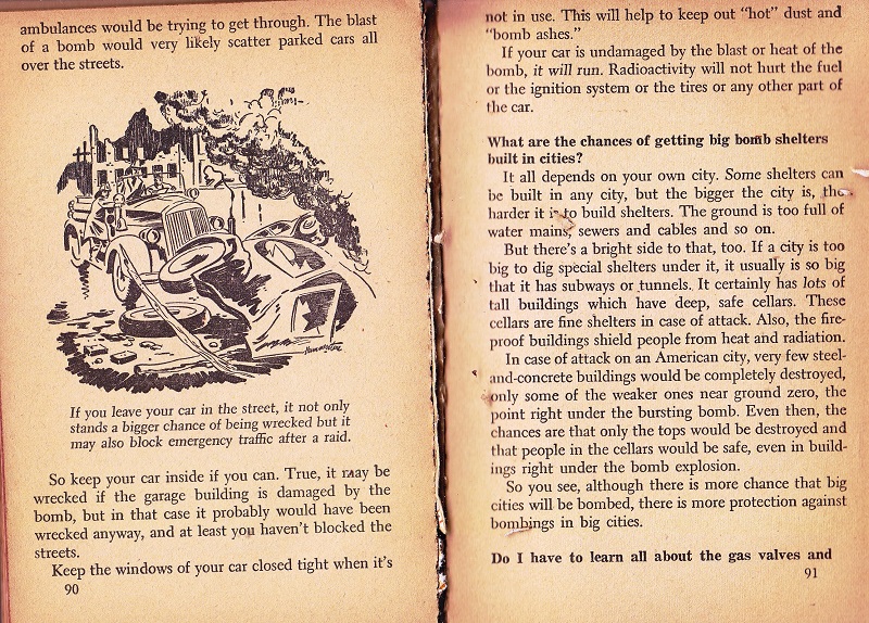 This book contains lots of helpful advice, from wearing a hat to prevent radiation to calculating the body count from the bomb’s epicenter. Even with some grisly death counts, the author assures us that “authorities” will still be in charge and that nuclear war is survivable. So pack your Geiger counter and hat so you can be ready when “the big one” comes.