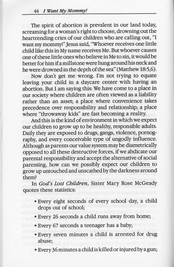 Working moms, this book is for you. Did you know you are doing your children a disservice by being selfish and working outside the home? They will probably become criminals all because you put your selfish need to work above your kids. Lucky for you, this author is here to straighten you out.
