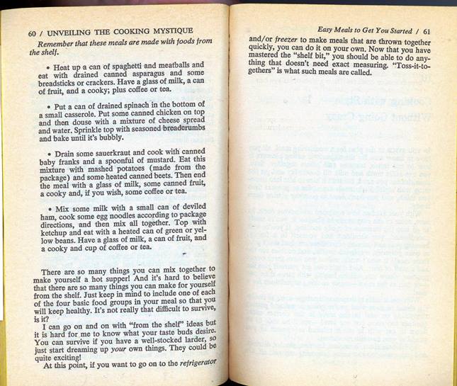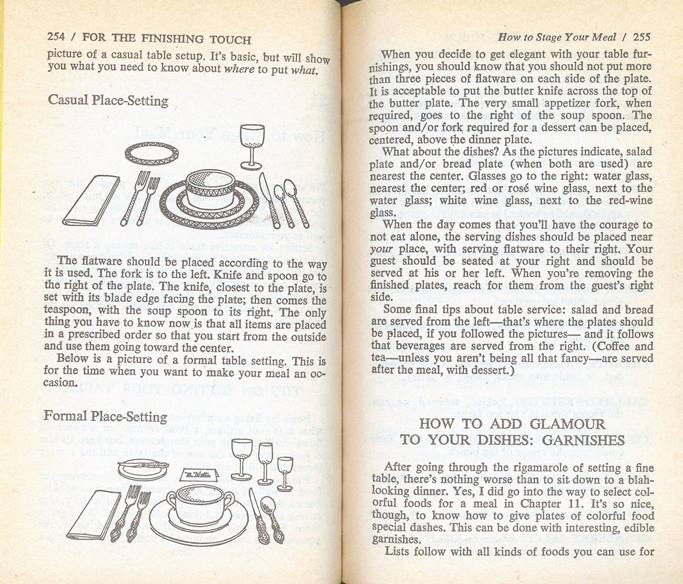 The recipes run the gamut from boiling an egg or making toast to some fancy lobster and desserts. For a book that has “cooking from scratch” as part of the title, I was a bit surprised to see all sorts of canned ingredients, not to mention some rather questionable combinations of food, such as mixing milk with some deviled ham and egg noodles. Top this mixture with ketchup (see the 4th picture below). I kind of threw up in my mouth thinking about this concoction. (Pro tip: this is NOT a recipe that would impress women!)