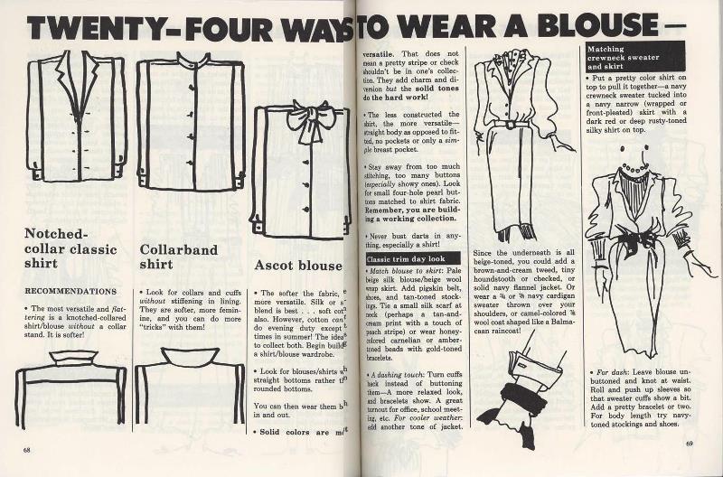 Aside from the fact the fashion is way out of date, and the illustrations are not great, this kind of book is a great idea. Dressing professionally was a big deal in the late 1970s and 1980s. Everyone I knew seemed to think about presenting the correct look for a professional woman. I think the claim that you will look “model-perfect on a tight time budget” is a bit of an oversell.