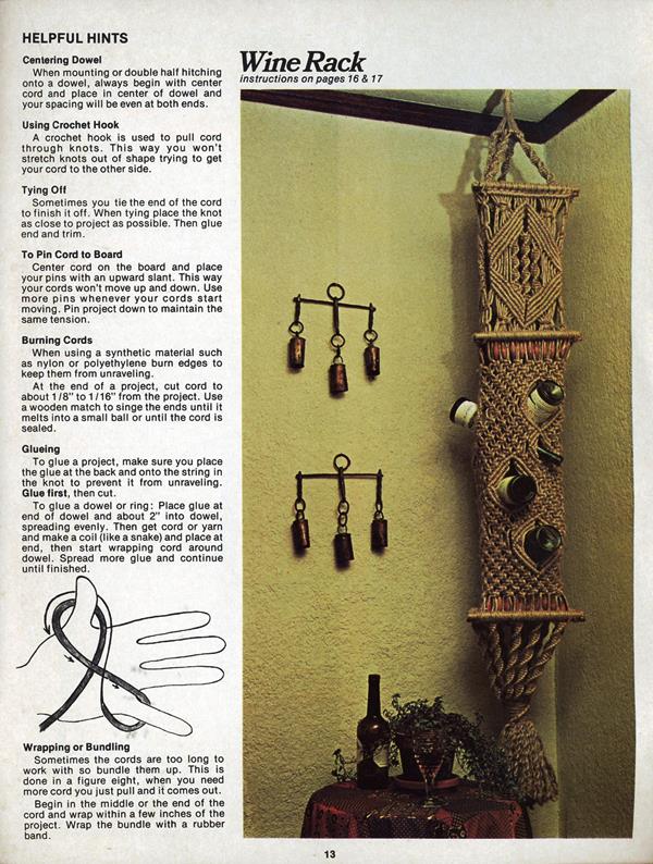 Time to get groovy with some macrame wall hangings and other crafty stuff. My personal favorite is the lampshade, however the wine “rack” comes in at a close second. Just about everyone I knew back in the day had some kind of macrame plant holder. I have seen newer editions of macrame and bought one for the collection. Circulation is meh. I am not sure that macrame will make a big comeback, but you never know. Trends come and go, and everything old will b new again. Hopefully, I won’t be alive to see it.