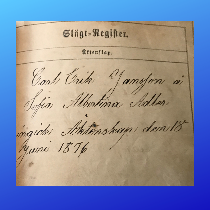 - A Swedish Bible that belonged to my great-great, grandparents when they emigrated to Marquette, Michigan about 1880. My great-great grandmother passed away after giving birth to my great grandmother around 1876. It is fragile and is falling apart. (The picture is a portion of the page from that Bible.)