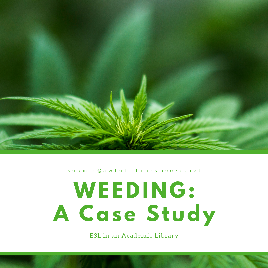 I’ve been doing extensive weeding of our collection, and recently pulled a number of titles related to the teaching of English as a second language. The collection hadn’t been weeded in a while – if ever – and was substantially outdated and unsightly. As a result, I wound up pulling several shelves worth of books.