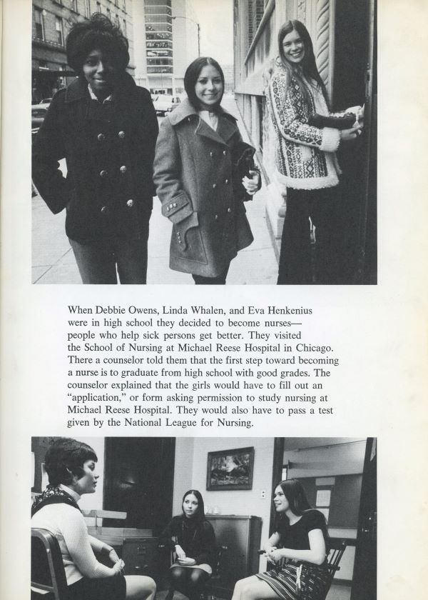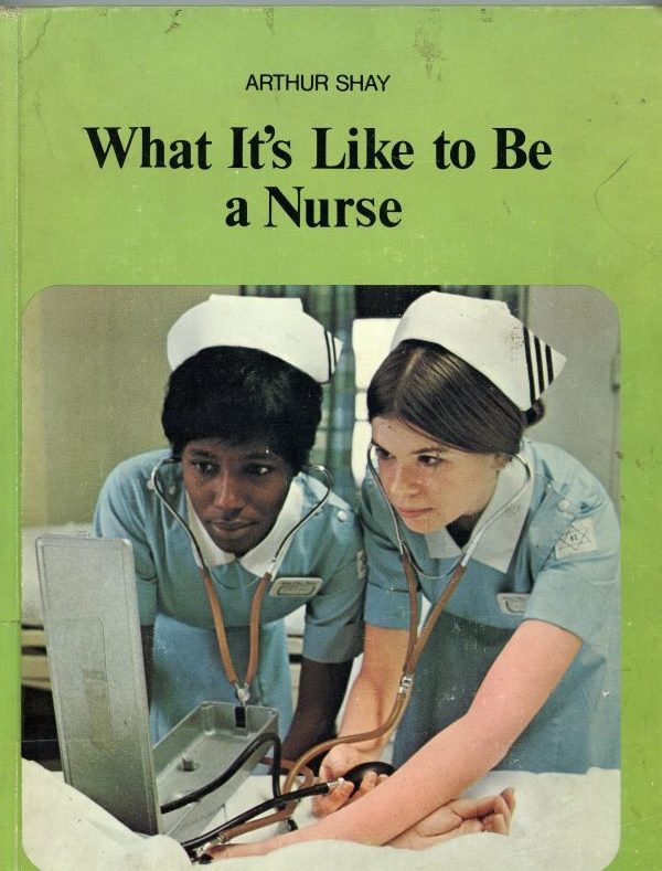 This book looks familiar. I think we featured it, but I can’t find it in our archives. It is a career book that is way past its prime. The narrative follows three nursing students through their program to graduation.