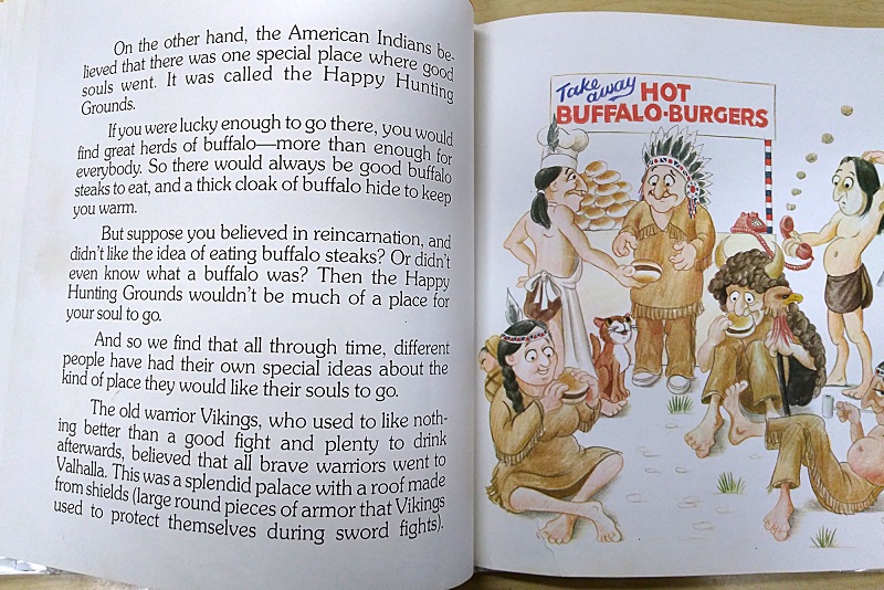 Submitter: This book comes from a small public library. It has had 4 circulations since 2001. That alone is enough to pull the book. Then there are some questionable illustrations and text that are a bit confusing and likely offensive in today’s social climate. For a children’s book there is A LOT of text. There are also some torn and stained pages. We do get requests for children’s books on death and heaven on occasion. It’s a difficult topic to explain and this book would likely confuse young minds.