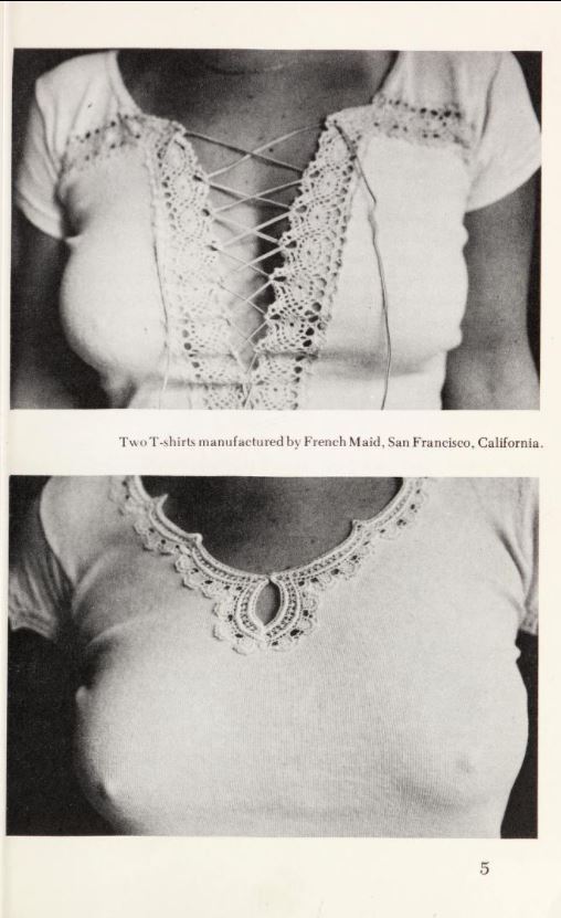 Holly: Fair warning before you scroll down: two of these images are potentially NSFW. One is a t-shirt model with “special skills” (image 6 below). This might have been a cool book in 1975, but I agree with Submitter: black and white images are just disappointing in a craft book. I want to see those chest handprints in living color (image 3 below…NSFW…).