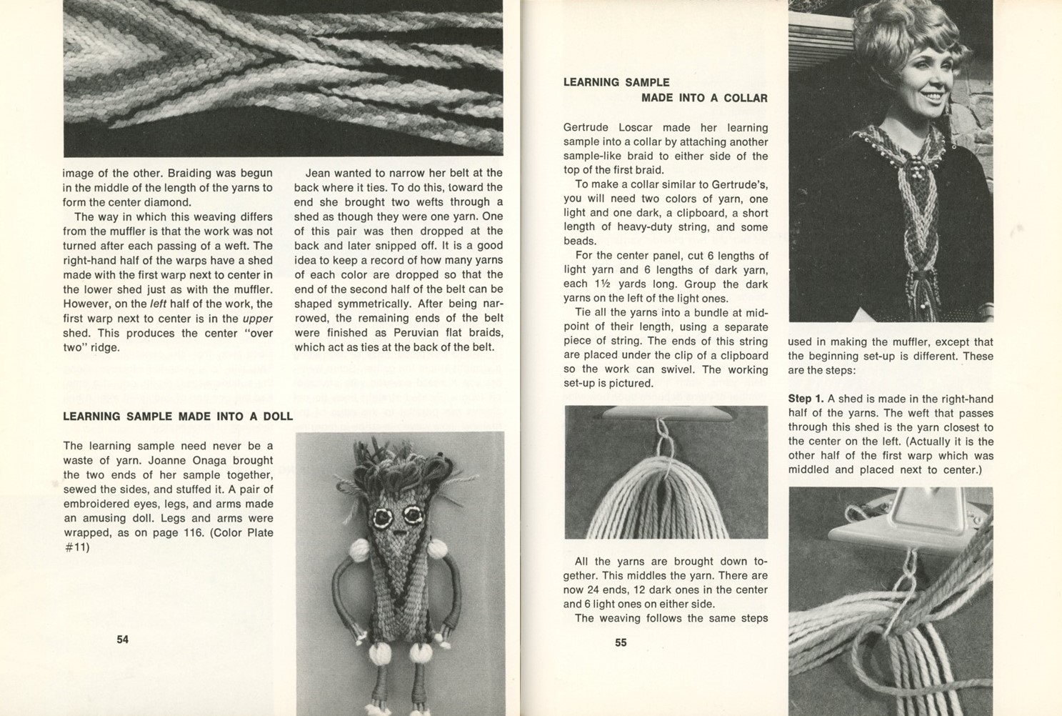 Another craptastic craft book for your consideration. The copy I happened to see was pretty beat up. That said, all I had to do was note the quasi “harvest gold” palette of colors to determine that this book was straight out of the 1970s. Looking at the crafts, you can see this is related to the macrame books of the same era. Everyone knew about macrame, but I never heard the term finger weaving used.