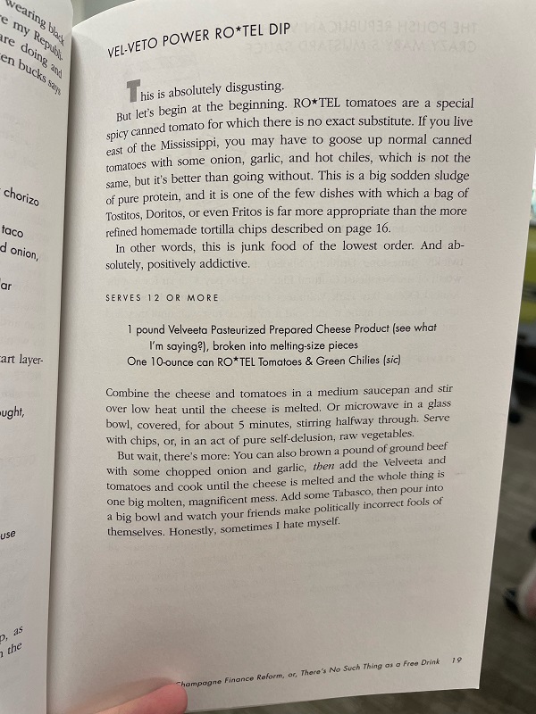 Holly: I bet if you replaced “Republican” with any other group of people, political or not, you’d get the same basic recipes submitted. It’s definitely tongue-in-cheek, and I bet there are libraries where this kind of thing circulates well. I agree that the recipes look kind of dumb. For me, that’s actually what makes it funny! Some of the reviews on GoodReads are pretty funny too.