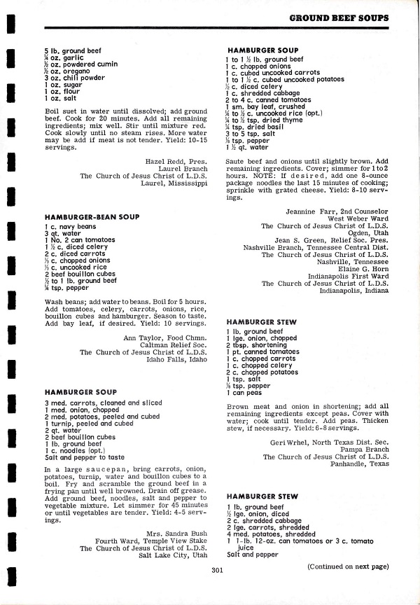 Submitter: While weeding the cookbook section, I spied this sad spiral bound book being held together with a prayer. There is one thing I hate about cookbooks and that is a lack of pictures. In the case of this book- there were about 4 black and white photos in total for all 380+ pages. Incidentally there were no secret Jello recipes from Joseph Smith.